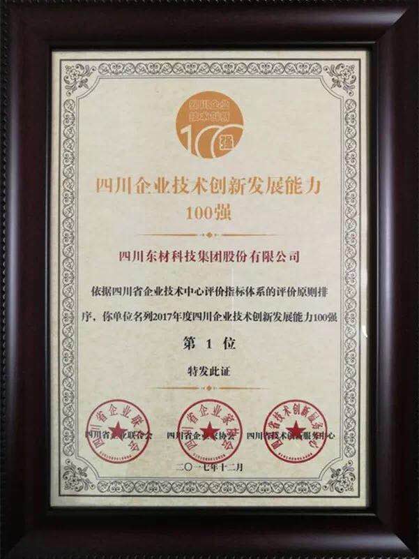 12月8日,2017四川100強(qiáng)企業(yè)發(fā)布會在成都舉行。四川東材科技集團(tuán)股份有限公司在企業(yè)技術(shù)創(chuàng)新發(fā)展能力100 強(qiáng)中位列第一。 四川企業(yè)技術(shù)創(chuàng)新發(fā)展能力100強(qiáng)是在四川省第十四次發(fā)布四川企業(yè) 100 強(qiáng)排序、第五次發(fā)布四川制造業(yè)企業(yè) 100 強(qiáng)排序和第六次發(fā)布四川服務(wù)業(yè) 50 強(qiáng)排序...